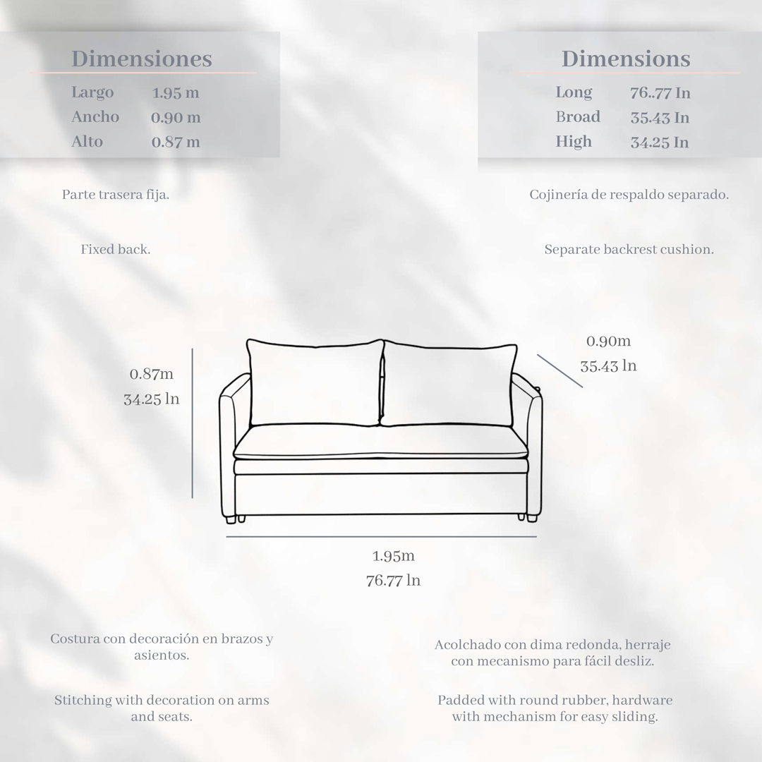 El sofá cama Montana tiene una cama extra que sale de la parte de abajo y se levanta, quedando a la altura del sofá. Fabricado en madera solida y poliester.